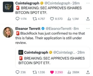 We apologize for a tweet that led to the dissemination of inaccurate information regarding the Blackrock Bitcoin ETF.